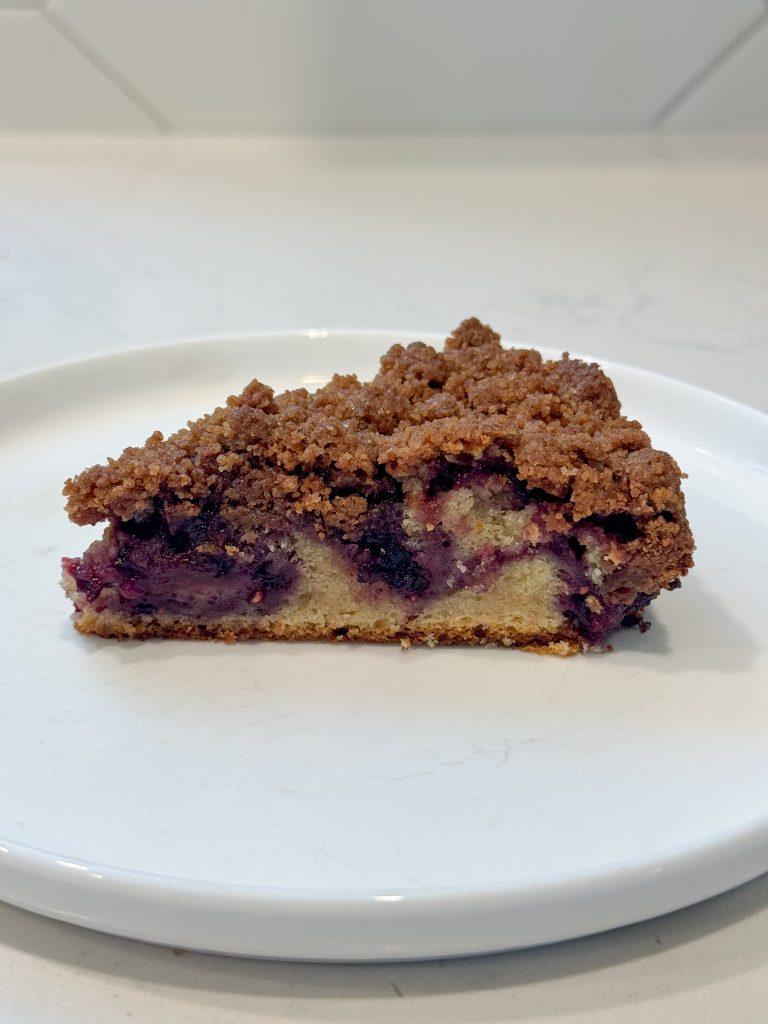 I know traditional coffee cake often has two layers of crumble – one in the middle and one on top. However, in this version the berry compote acts as the rich, flavorful middle layer. Alternatively you could divide the batter, compote, and crumble in halves to make the classic double layer cake! Personally I love an extra thick single layer crumble, but do what your heart desires!